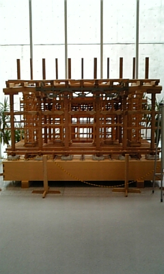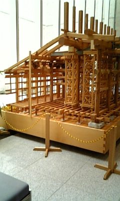 これは御影堂の模型です。柱1本たがわず実物どおりの模型です。もちろん木製です。