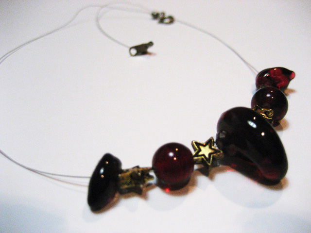 赤いガラスが映えるように玉の間には星型のパーツを入れてあります。