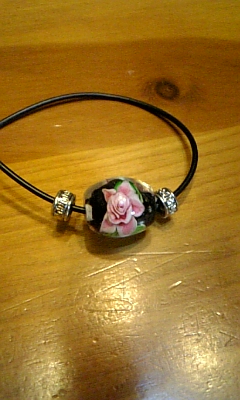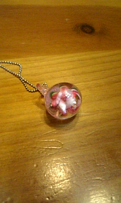 これは透明なガラス玉の中にピンクの花が入れてあります。
